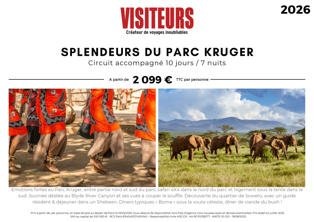 L'agence de voyages Un Monde d'émotions vous présente un CIRCUIT SAFARI EN AFRIQUE DU SUD 7 NUITS/ 10 JOURS