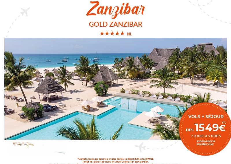 Votre agence de voyages Un Monde d'émotions vous propose une offre PROMO HOTEL GOLD ZANZIBAR 5*