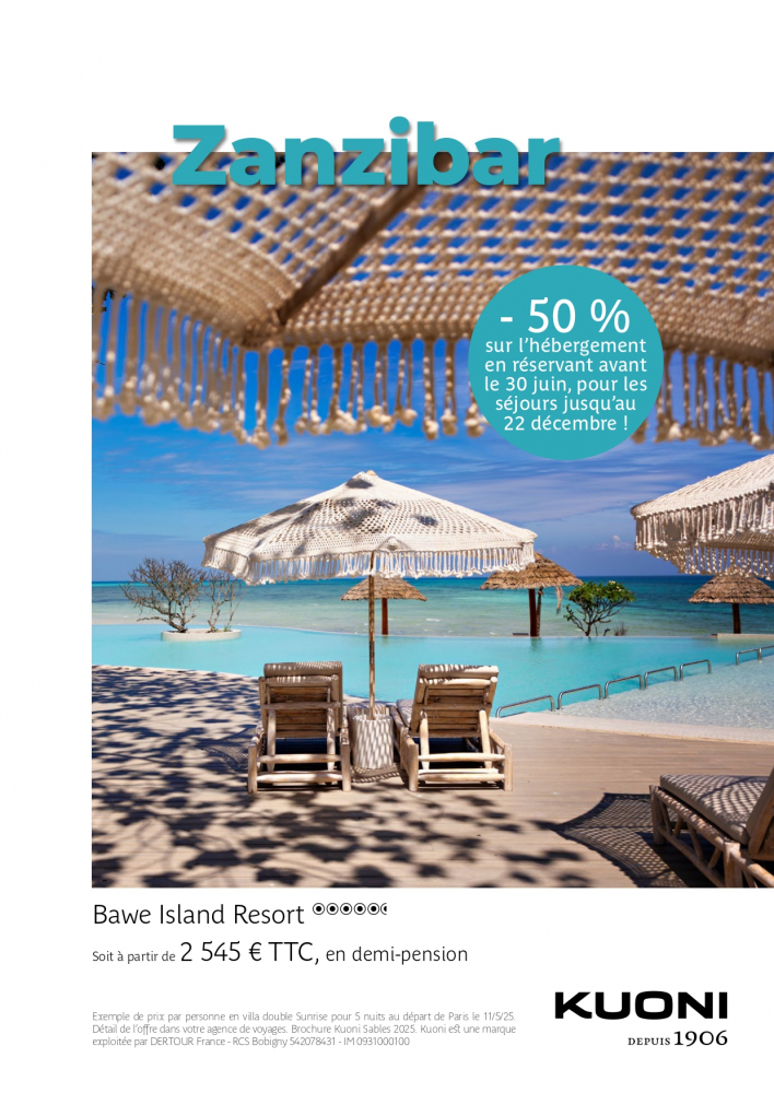 Un Monde d’émotions vous propose une promotion sur l'hôtel Bawe Island Resort 5***** à Zanzibar.