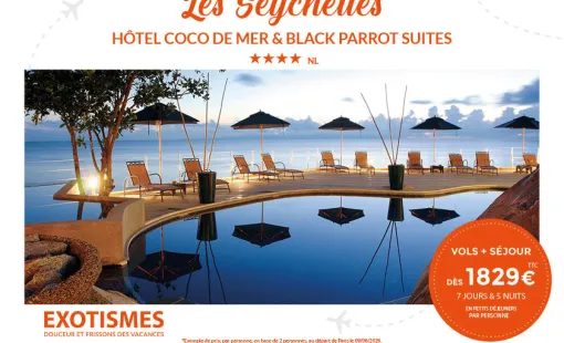Partez avec l'agence de voyages Un Monde d'émotions avec une PROMO SEYCHELLES HOTEL COCO DE MER 4*