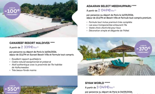 Partez avec l'agence de voyages Un Monde d'émotions avec une PROMO MALDIVES